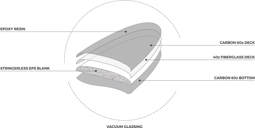 As pranchas Full Carbon consistem em blocos de EPS sem stringer que são laminados a vácuo completamente envoltos em fibra de carbono, utilizando resina Epoxy e aplicando uma tela extra de fibra de vidro de 4oz sob o carbono no deck (construção standard). A laminação a vácuo utiliza as melhores práticas ambientais e cria uma combinação única de flexibilidade, peso ultra-leve e durabilidade. As pranchas são leves, resistentes e vivas, gerando velocidade rapidamente, com muito impulso e projeção. Este é o próximo nível da construção de pranchas de surf, sendo uma tecnologia adequada para a maioria dos modelos da SharpEye e especialmente indicada para ondas mais fracas e lentas. Um exclusivo Sharpeye Surfboards.