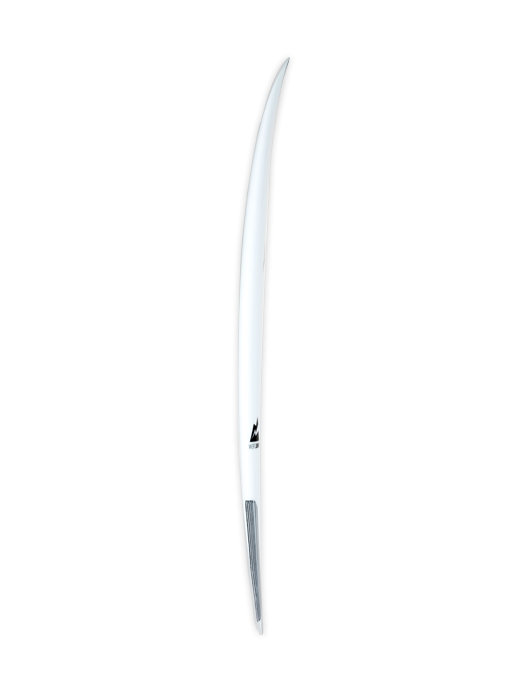 The first step was creating an outline with more surface area and chest flotation, narrowing from the midsection to the tail. In other words, you get paddle power in a high-performance board designed to respond quickly, generate control, and maintain speed, crucial on the drop and inside the barrel.