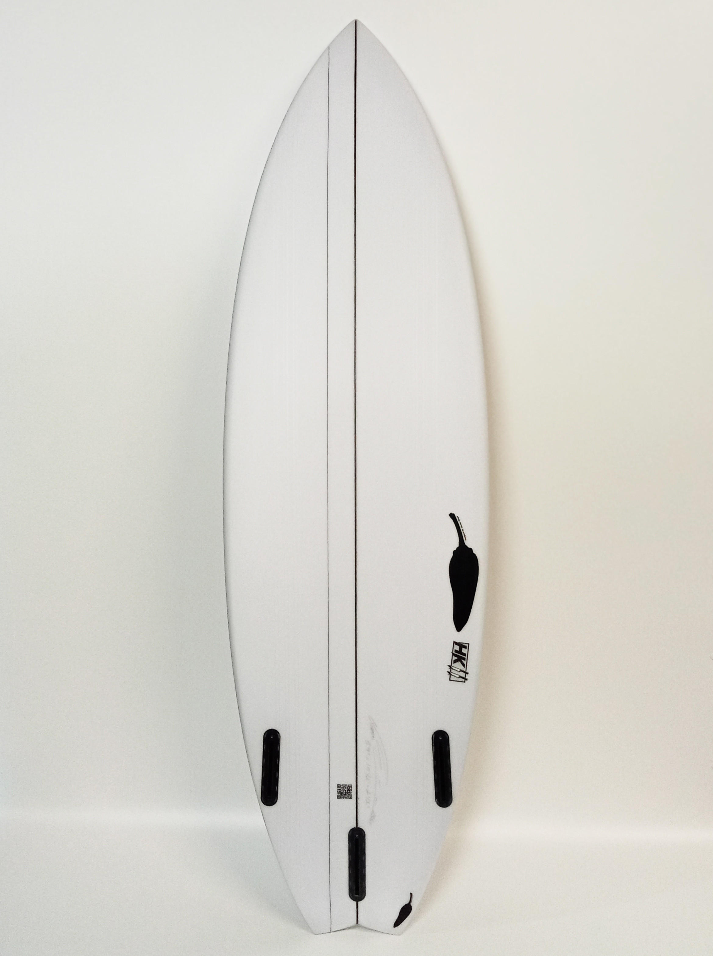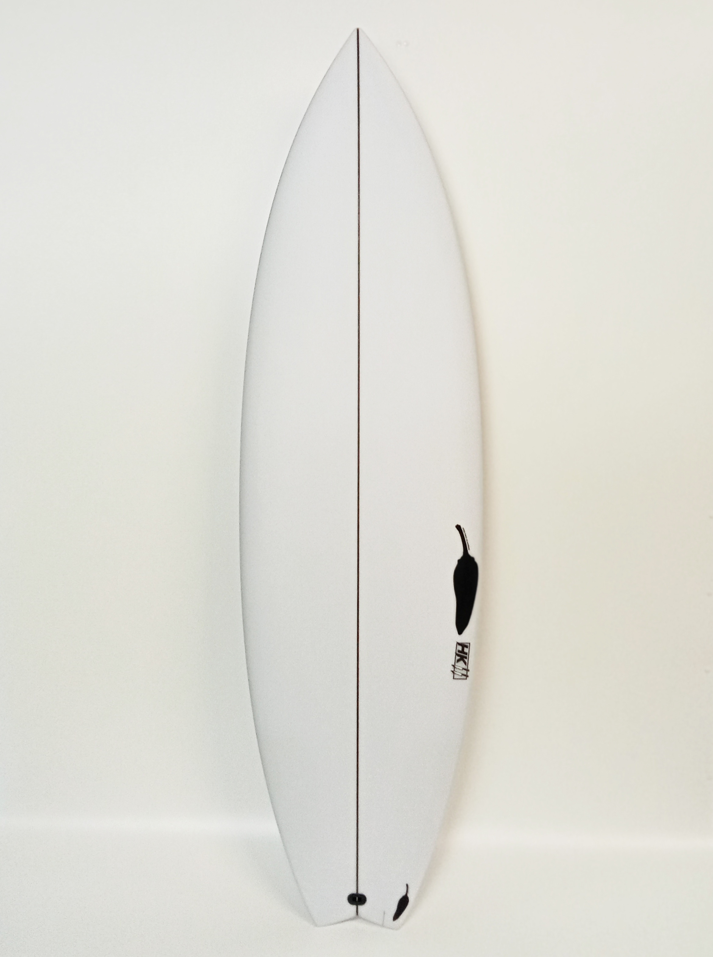 The HKII features a classic, slightly fuller shortboard outline in the front. Chilli removed the hip through the fins, creating a more fluid ride rail to rail. This facilitates the straighter rail along the tail, enhancing speed, while a nice pulled in swallow tail allows for tight transitions when the section presents itself.