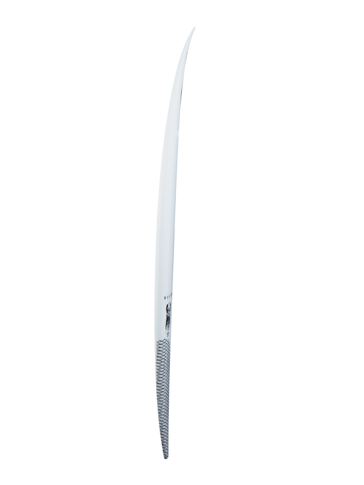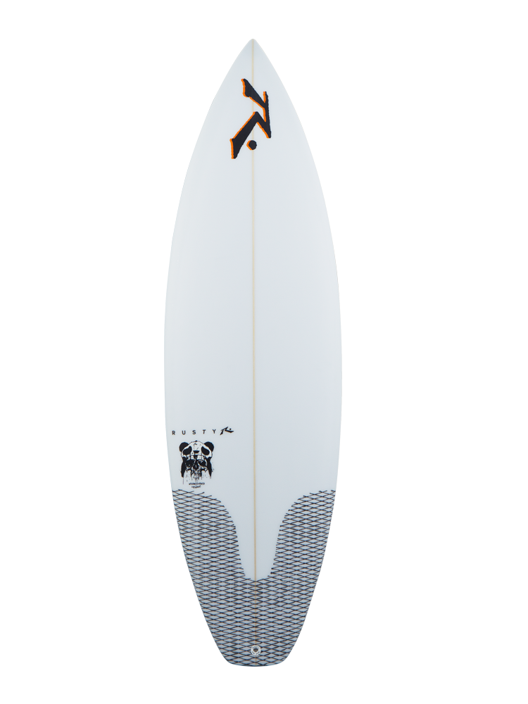 Esta é a prancha que o William Cardoso, aka Panda, usa em competição. O Panda é um surfista pesado, contudo muito power, projetando litros e litros de água em cada curva. Ele precisa de algo que flutue mas que continue a ser uma prancha de performance. Uma boa quantidade de rocker combinado com um single concave expressivo mais um 'kick' nas últimas 3 polegadas de tail. Tudo isto combinado permite ao Panda surfar vertical em arcos apertados. A prancha tem um outline curvilíneo e um squash não muito largo. Os rails são cónicos para enterrar na água nas curvas, mantendo a espessura no centro com um dome deck acentuado. Para ondas de 0,5m a 2m. ® Rusty Surfboards